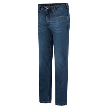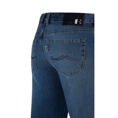 Five-Pocket-Jeans mit aufgesetzter Uhrentasche. Normale Leibhöhe und bequemer, weiter Beinverlauf. Fußweite ist mit ca. 2 cm plus etwas weiter als bei den anderen Clark-Varianten. Passend für jeden Figurtyp.