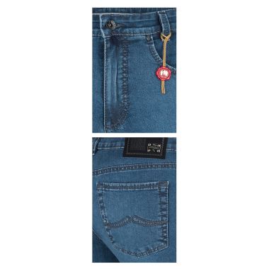 - Hochwertiger, leichterer Denim Stretch aus besonders langstapliger Baumwolle, ca. 10 oz.