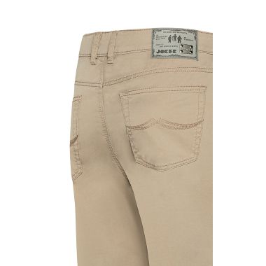 Die bekannte Joker Metallplakette am Bund, die drei Männchen auf der Schlitzleiste des Reißverschlusses, die doppelten Gürtelschlaufen für schmale und breite Gürtel sowie die Gürtel-Dornschlaufe vervollständigen dieses Modell.